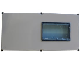 Transparent låg APO41 fra GE Power Controls. Dette låg er 300 x 300 x 45 mm og leveres med lågskruer.