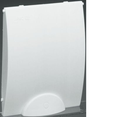 Hvid låge til Hager GD108E, med hængsel og monteret låge. IP40, RAL 9010.