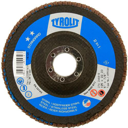 Tyrolit Standard 2IN1 lamelskive til stål og rustfrit stål. Lang levetid og god ydelse. Fås i mange diametre og kornstørrelser. Ø125 mm.