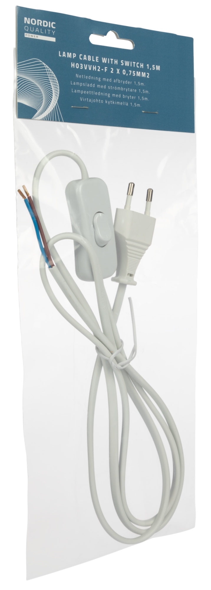 Denne hvide ledning med afbryder er perfekt til dig, der ønsker en praktisk og stilren løsning til dine lamper og andre elektriske apparater. Med en længde på 1,5 meter giver den fleksibilitet i forhold til placering.