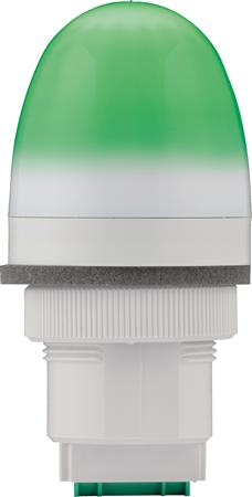 Grøn advarselslampe med LED og multifunktion til 12/24V systemer. Ideel til panelmontering med piezoelektrisk lydstyrke og 3 alarmniveauer.