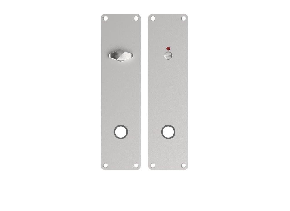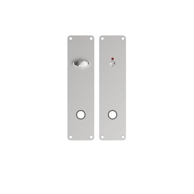 Langskilte, 215x55x2 mm, til toilet. Fremstillet i matbørstet rustfrit stål (AISI 304) med dørgrebshul forneden. Leveres i sæt inkl. skruer.