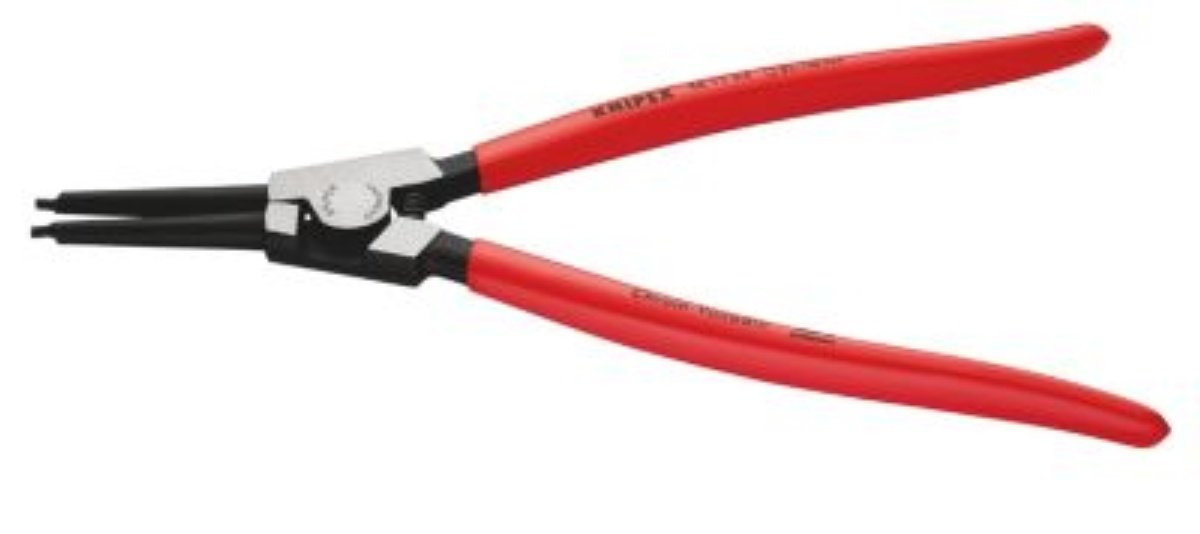 Knipex 46 11 A1L låseringtang til udvendige ringe på aksler. Tangen er betrukket med kunststof og er sort atramenteret med en længde på 140 mm.