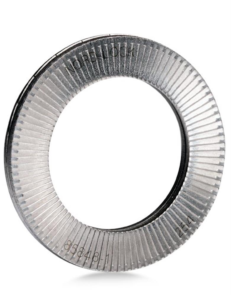 NORD-LOCK låseskiven sikrer effektiv låsning af skruesamlinger med en unik kamlåsning. Skiverne leveres sammenlimet for korrekt montage.