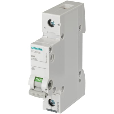 Denne 1-polede afbryder fra Siemens er designet til montering på DIN-skinner og er ideel til styring af elektriske anlæg. Den bruges ofte til at skifte belysning, motorer og andre elektriske enheder.