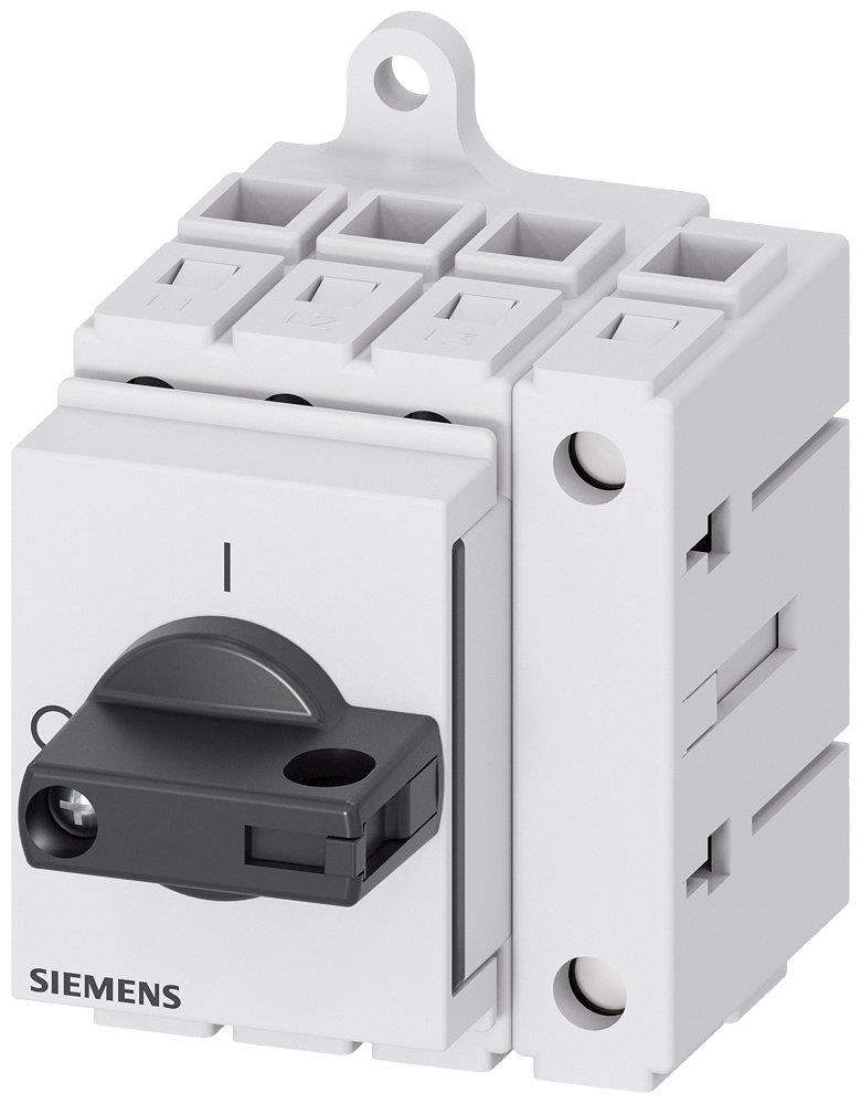Siemens 3LD3 lastafbryder med Iu 25 A. Hovedafbryder, 3-polet + N, med nominel driftskapacitet ved AC-23 A ved 400V 9,0kW. Til installation i fordelingstavler.