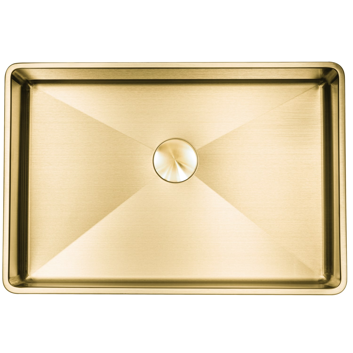 Denne Lavabo High badvask kombinerer stilrent design med praktisk funktionalitet. Den firkantede håndvask er udført i rustfrit stål med en PVD-overfladebehandling i messing, hvilket giver et eksklusivt og holdbart finish.