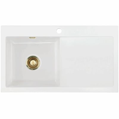 Mera 90 køkkenvask, hvid keramik, messing afløb