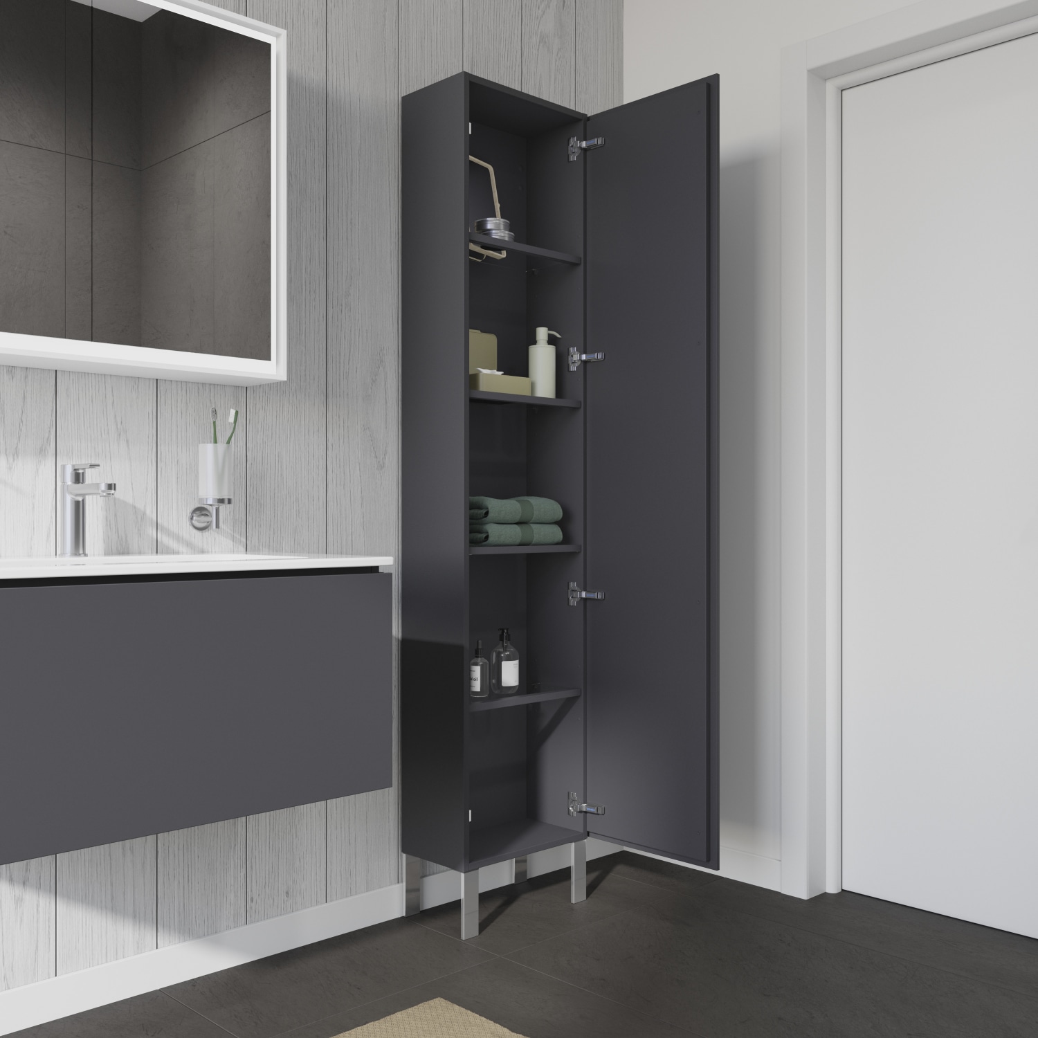 Elegant højskab fra Duravit med én låge. Perfekt til opbevaring på badeværelset. Mål: 1760x400x24 cm.
