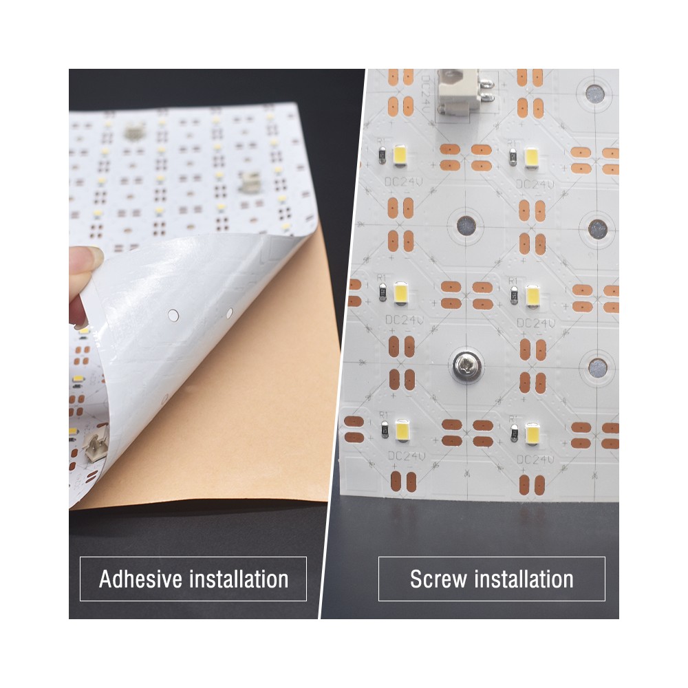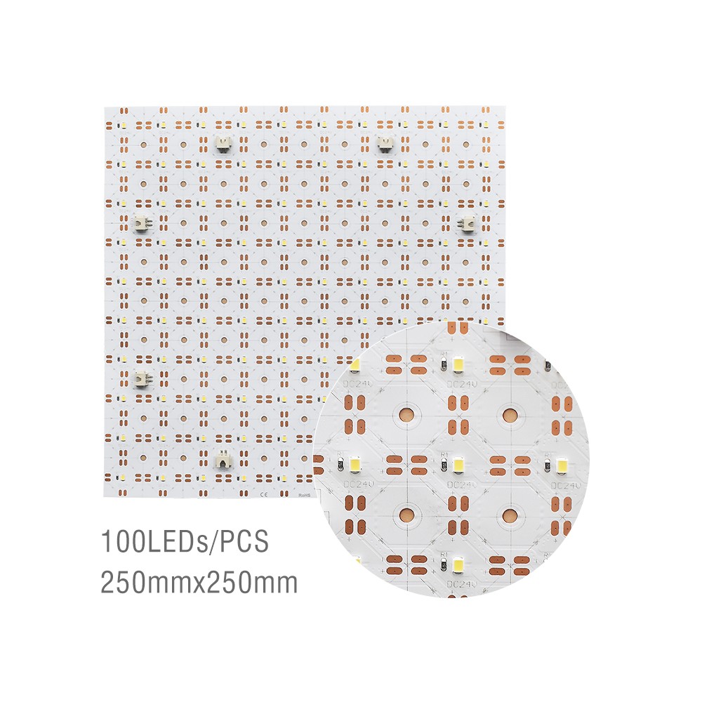 Fleksibelt LED ark 25x25 cm med høj farvegengivelse (RA94) og varm hvidt lys (3000K). 12W, 24V DC, IP20.