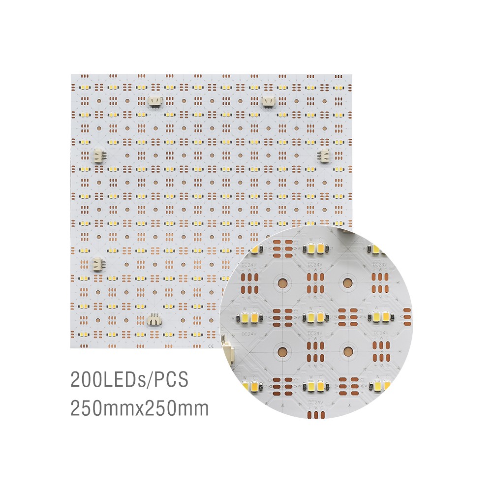 Dette LED ark er designet til at give en fleksibel og høj kvalitets belysning. Med en RA-værdi på 95 sikres en meget naturtro farvegengivelse. Arkets dimensioner er 250x250 mm med en højde på kun 8,5 mm, hvilket gør det ideelt til integration i forskellige applikationer, hvor pladsen er begrænset.
