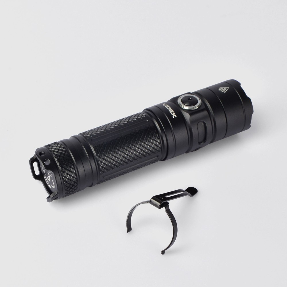 Lommelygten er fremstillet af anodiseret aluminium, hvilket giver en holdbar og modstandsdygtig overflade. Den er IP68-klassificeret, hvilket betyder, at den er fuldstændig beskyttet mod støv og kan tåle nedsænkning i vand. Den fungerer optimalt i temperaturer fra -20°C til +40°C.
