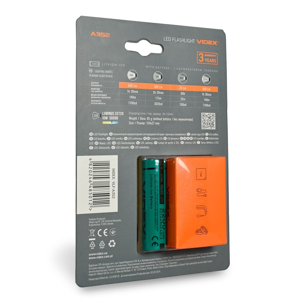- Lysstyrke: 600 lumen