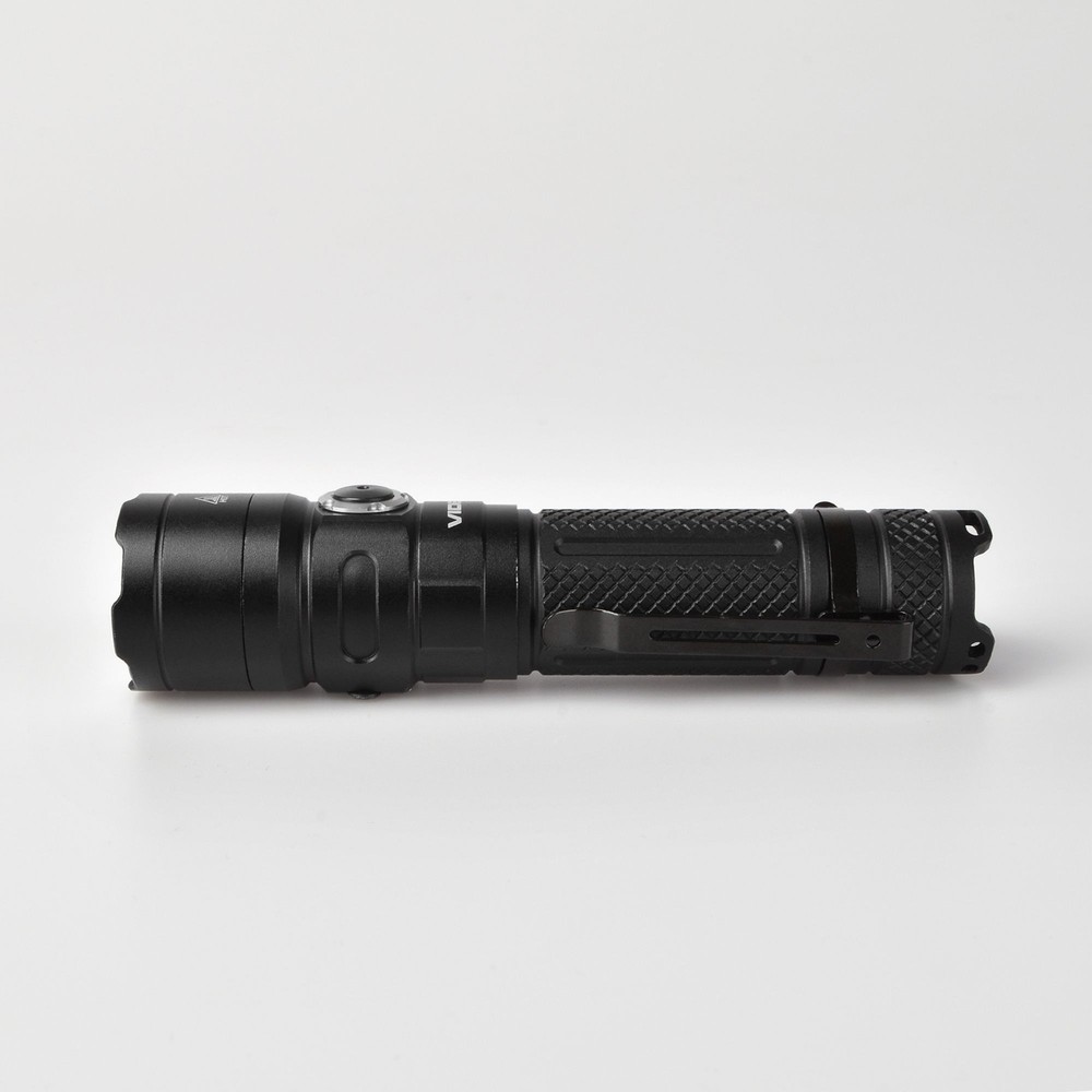 Lommelygten er konstrueret af anodiseret aluminium, hvilket sikrer holdbarhed og modstandsdygtighed over for slid. Dens kompakte dimensioner (højde 128 mm, bredde 31 mm, dybde 31 mm) gør den nem at transportere og håndtere.
