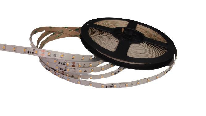 Fleksibelt LED bånd med 120 dioder/m, 24V, 14,4W, IP20 og 2900K. Høj farvegengivelse (CRI>90) og MacAdam Step 3. Ideelt til montering i alu profil.