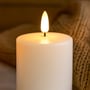 LED bloklys med naturtro flammeeffekt. Inkl. fjernbetjening og timerfunktion. Fremstillet af ægte stearin.