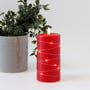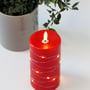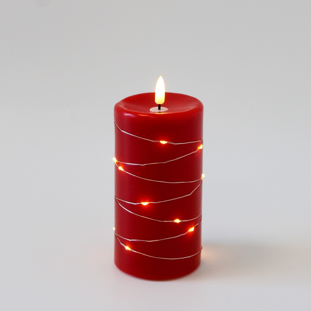 Dette LED bloklys er designet til at give en varm og indbydende atmosfære i ethvert rum. Med en højde på 15 cm og en diameter på 75 mm passer det perfekt ind i de fleste indretninger. Lyset er fremstillet med en overflade af rød stearin, hvilket bidrager til et autentisk udseende og en behagelig taktil fornemmelse.