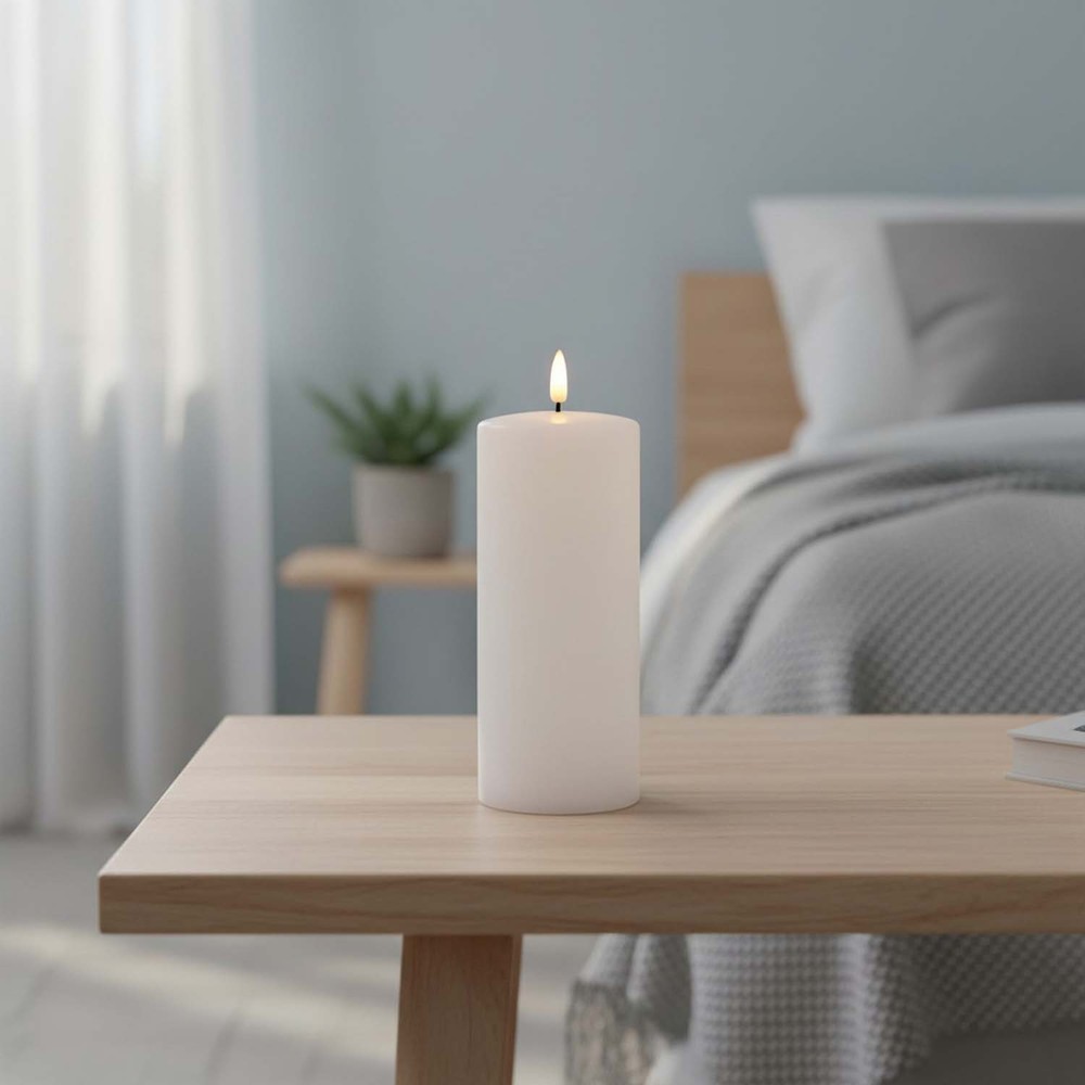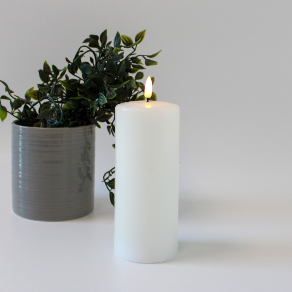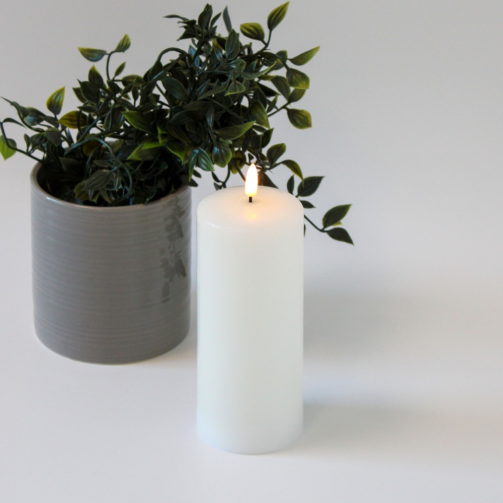 Skab hygge med et LED bloklys med smelte-look og naturtro flammeeffekt. Inkl. fjernbetjening og timer.