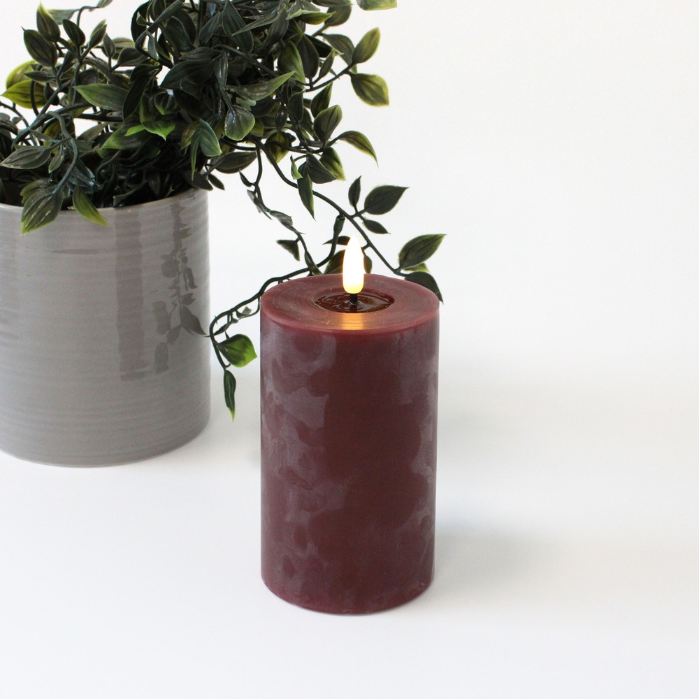 Dette LED bloklys kombinerer æstetikken fra et traditionelt stearinlys med fordelene ved LED-teknologi. Med sit detaljerede smelte-look og en naturtro flammeeffekt skaber lyset en hyggelig og varm atmosfære i ethvert rum. Den bordeauxrøde farve tilføjer et elegant præg, der passer ind i mange indretningsstile.