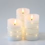 Disse bloklys er fremstillet af ægte stearin og udstyret med en indbygget lyskæde, der giver en flot og unik lyseffekt. Den naturtro flammeeffekt skaber en realistisk og beroligende atmosfære, perfekt til afslapning eller som dekorativ belysning i ethvert rum.