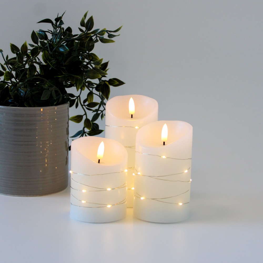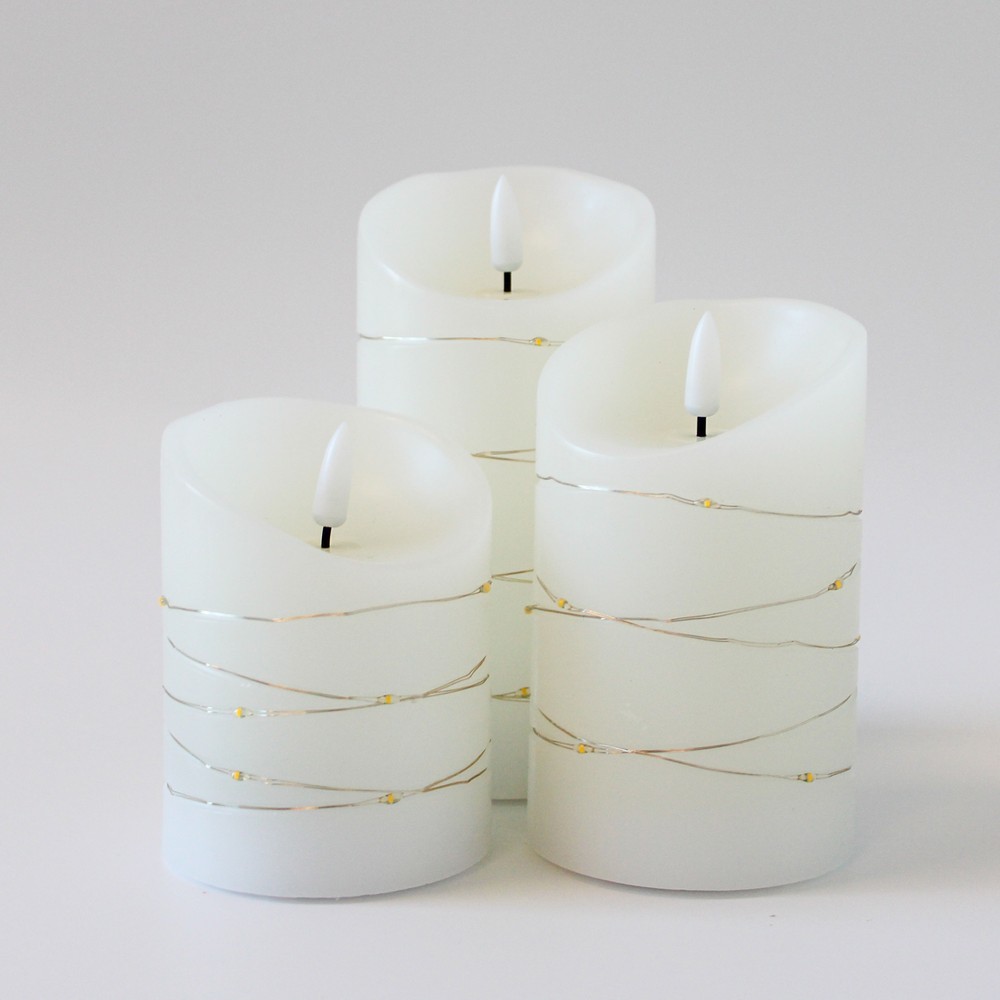 Skab en hyggelig og stemningsfuld atmosfære i dit hjem med dette LED bloklys sæt. Sættet består af tre bloklys i forskellige højder, alle med en diameter på 7,5 cm og højder på henholdsvis 10 cm, 12,5 cm og 15 cm.