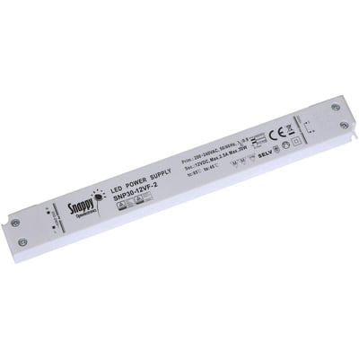En 12V slim LED driver på 30W fra Snappy. Ideel til diskret integration.