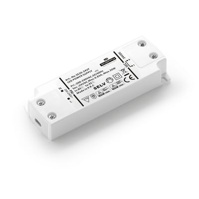 Kompakt og effektiv LED driver på 20W med 24V DC output. Ikke dæmpbar.