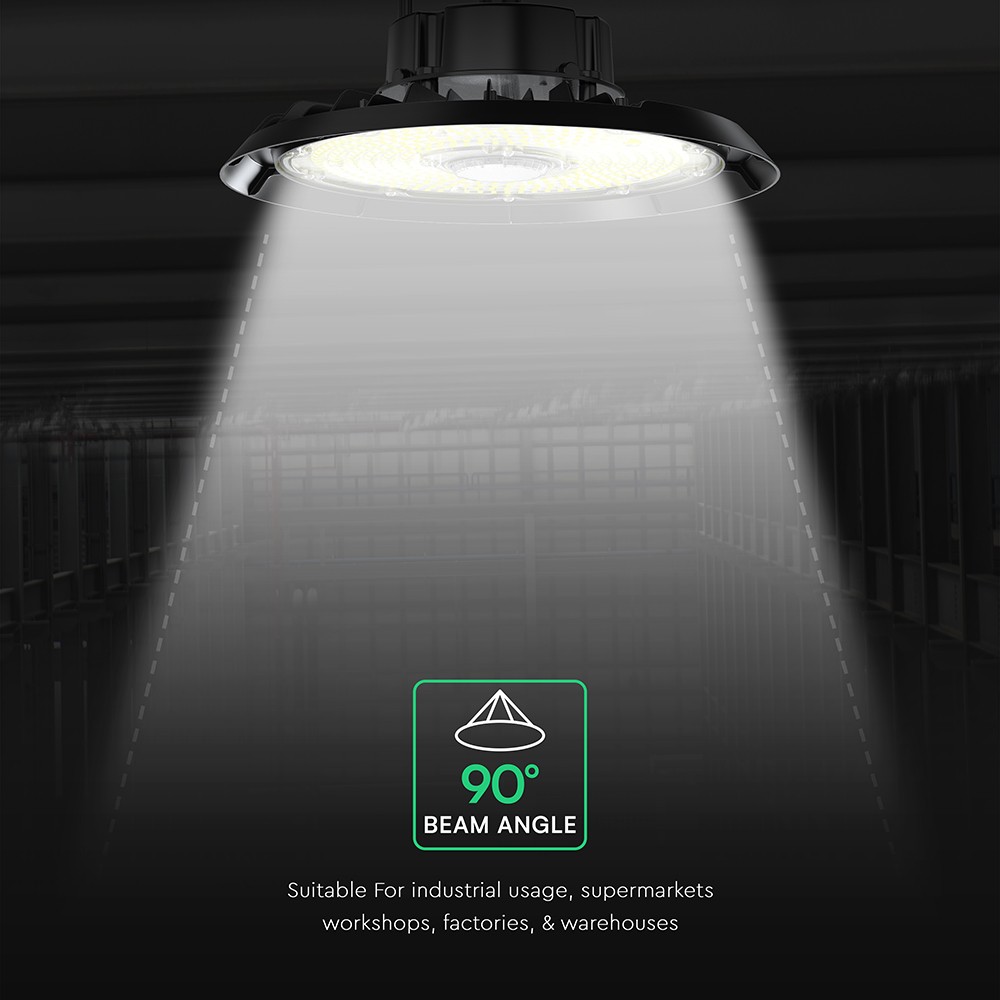 Denne 200W LED high bay fra V-TAC leverer en imponerende lysstyrke på 27.000 lumen med en effektivitet på 135 lumen per watt. Med en spredningsvinkel på 90 grader og en neutral farvetemperatur på 4000K er den ideel til belysning af større rum som lagerhaller, værksteder og industribygninger.