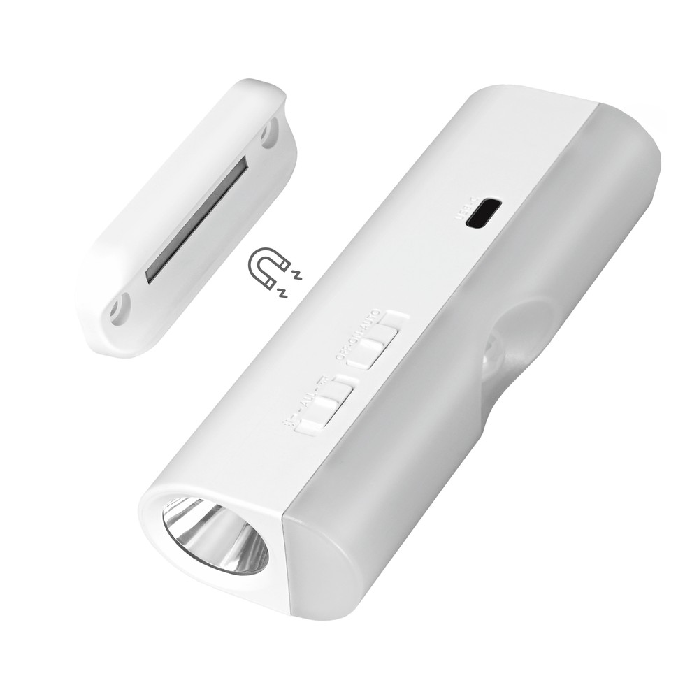 Genopladelig LED natlampe med bevægelsessensor. Dæmpbar og med neutral lysfarve (4000K). Ideel til brug i mørke rum.