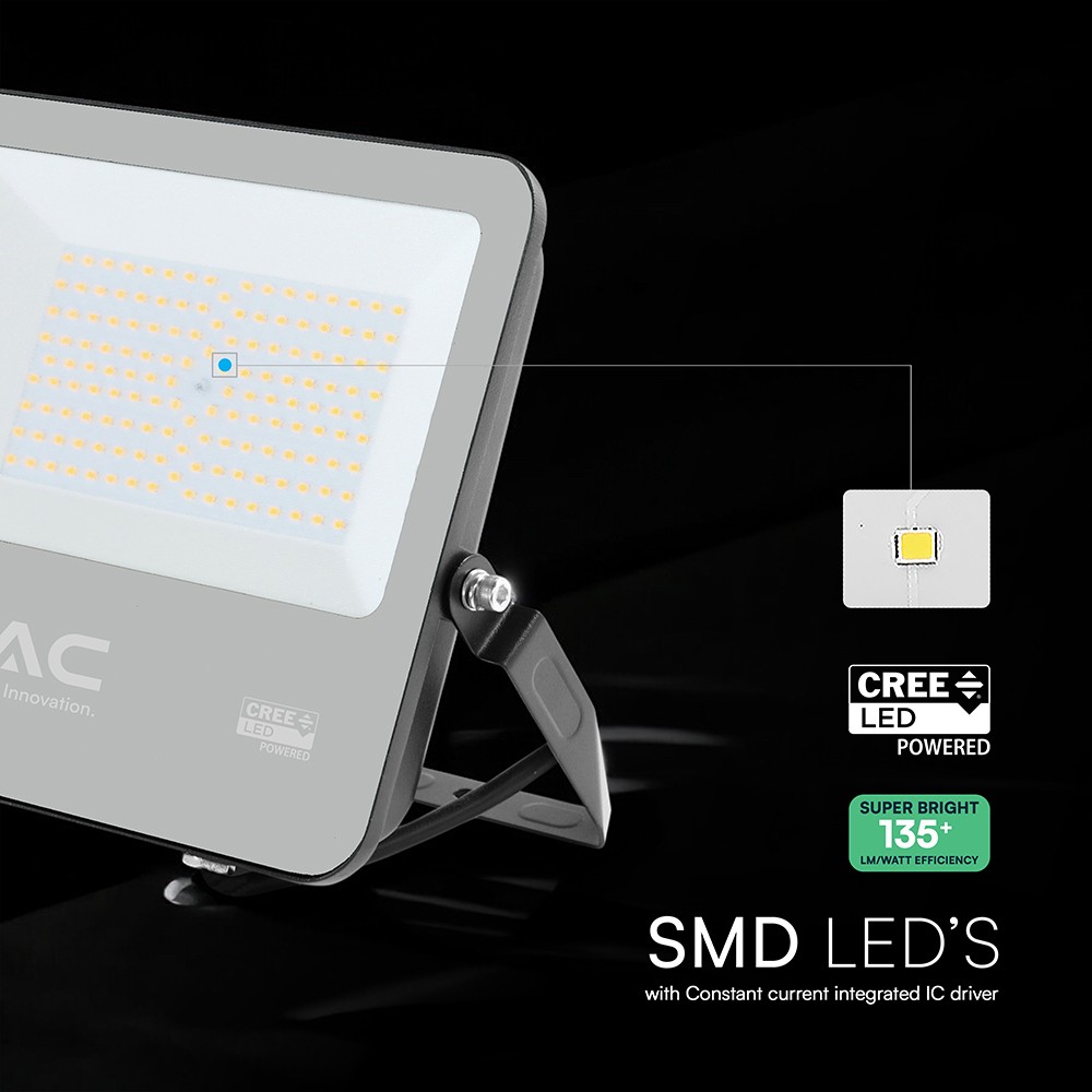 Denne 100W LED projektør er designet til effektiv og kraftig belysning. Den er udstyret med en højkvalitets CREE-chip, der sikrer en lysstyrke på 13500 lumen og en energieffektivitet på 135 lm/W. Projektøren har en farvetemperatur på 4000K, hvilket giver et klart og neutralt lys.