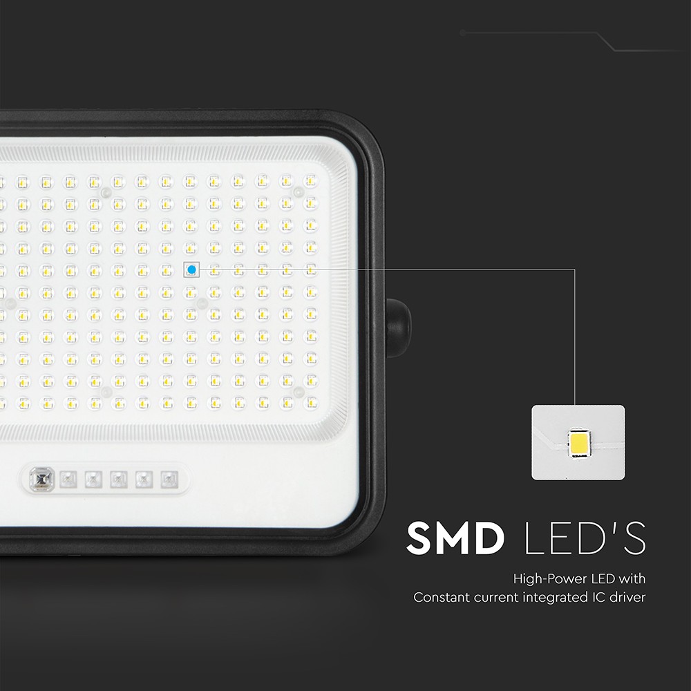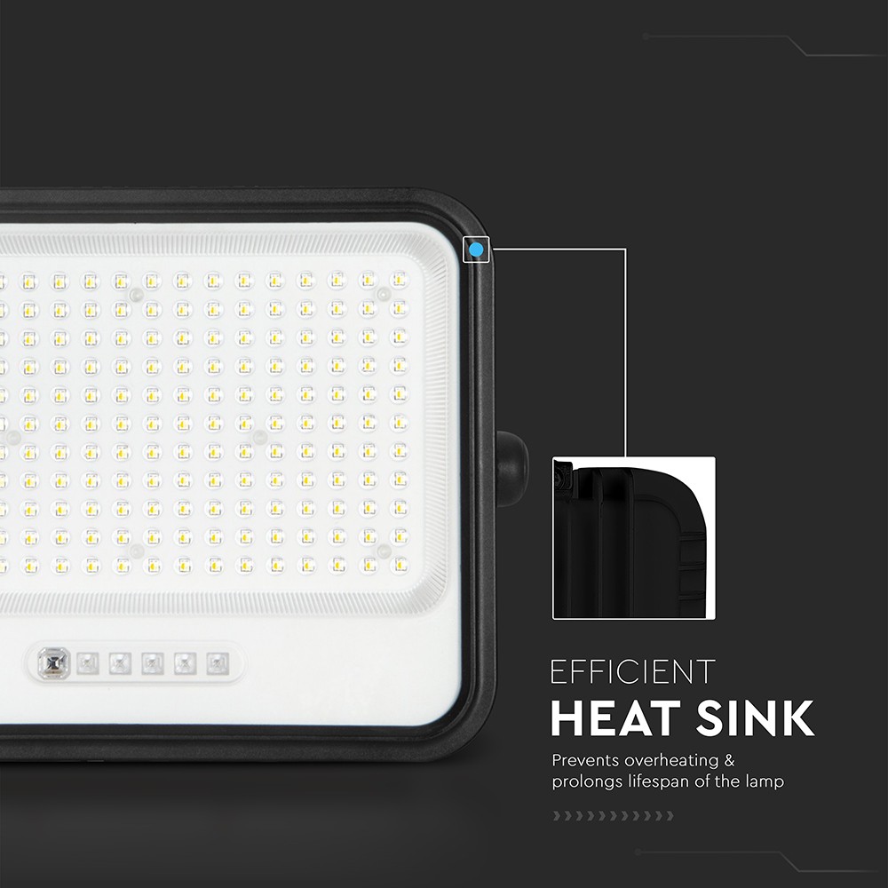 Denne 400W LED projektør er designet til effektiv og alsidig belysning udendørs. Med sit integrerede solpanel er den en miljøvenlig løsning, der oplader sig selv i løbet af dagen.