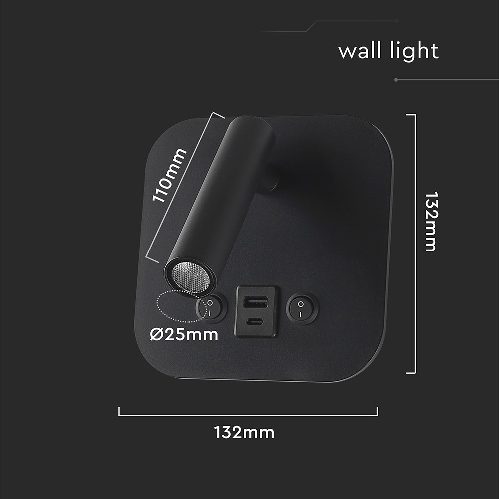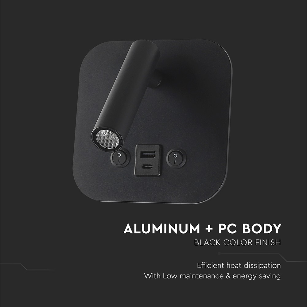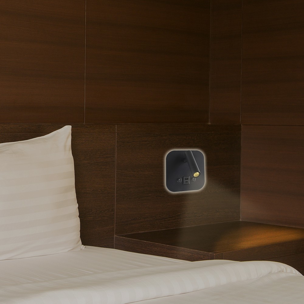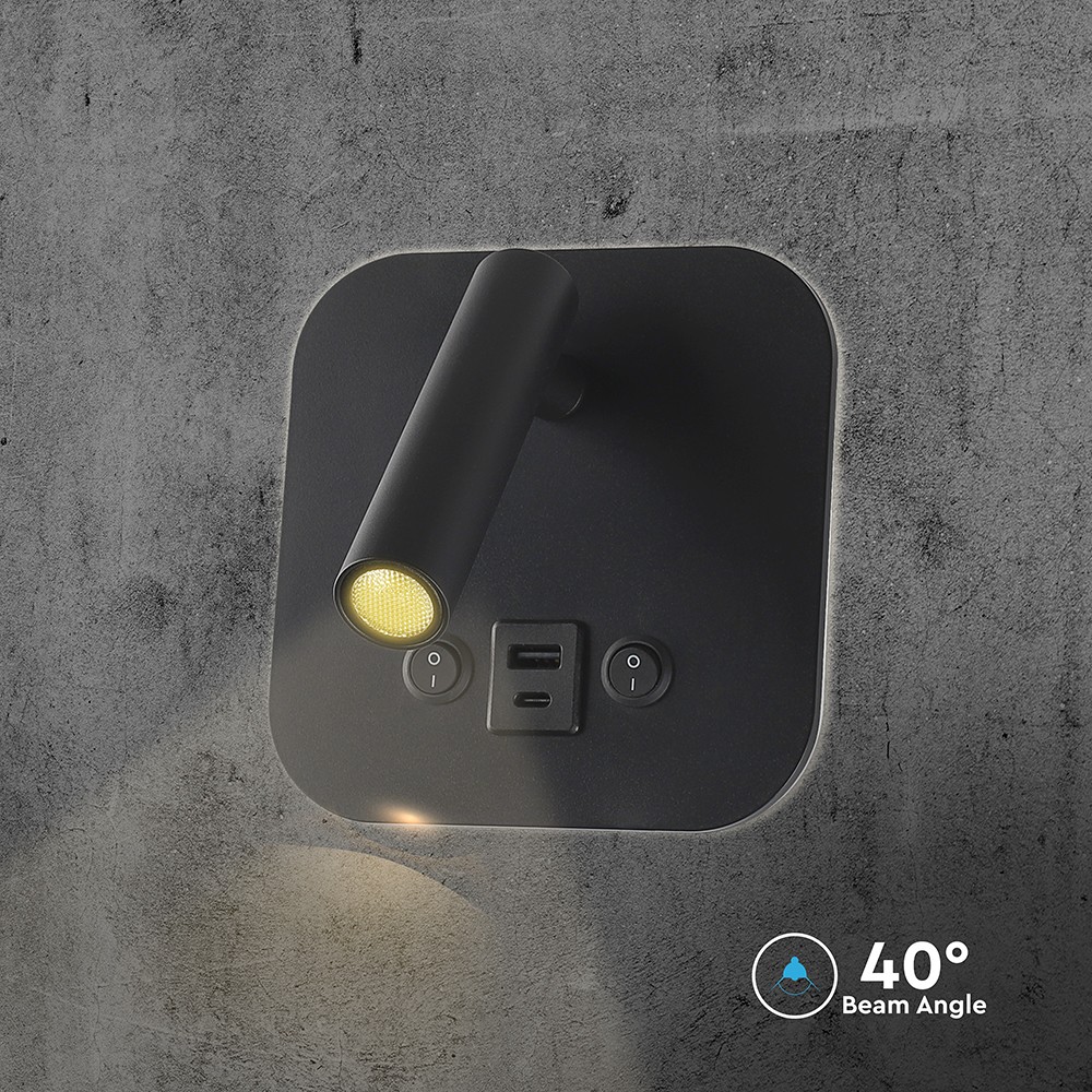 Moderne LED sengelampe med vægmontering. 8W, 830 lumen, 3000K. Inkl. USB/PD opladning. Aluminium/PC. IP20.