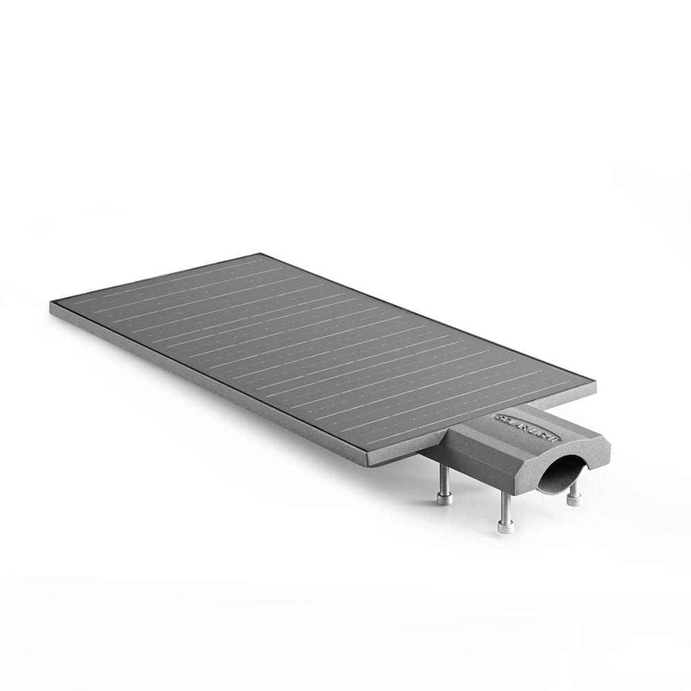 Effektiv LED solcelle gadelampe med bevægelsessensor. 2300 lumen, 5000K, IP65, aluminium.