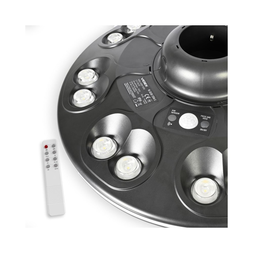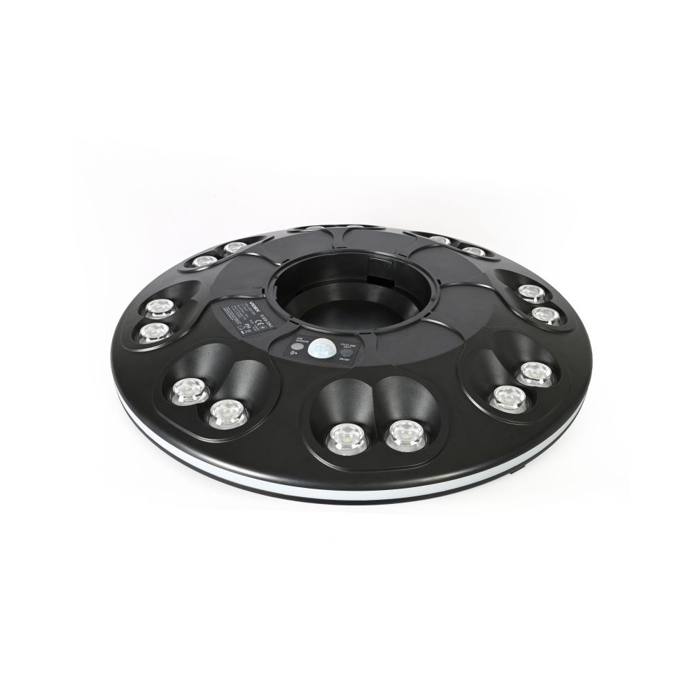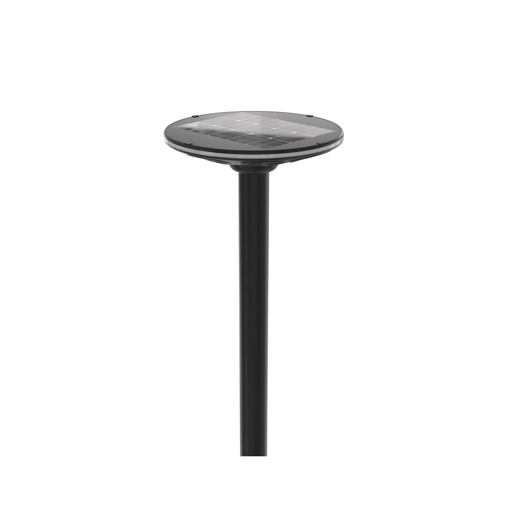 Smart LED solcelle parklys med bevægelsessensor. 3000K varmt lys. IP54-klassificeret og IK06. Driftstemperatur -10 til +40°C.