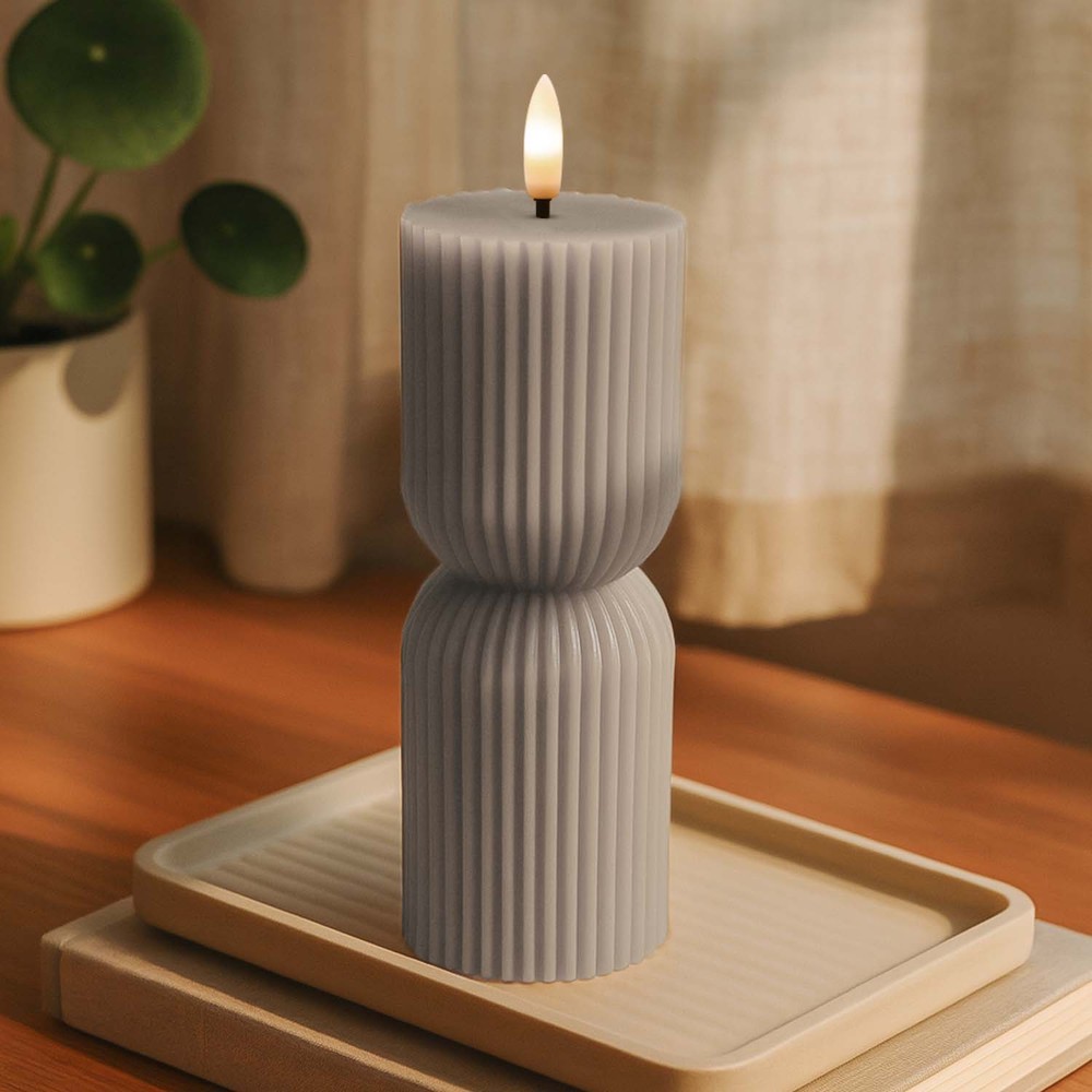 Skab en hyggelig og stemningsfuld atmosfære med dette elegante LED timeglas lys. Med sin naturtro flammeeffekt og det ydre af ægte stearin, giver det et varmt og indbydende skær i ethvert rum.