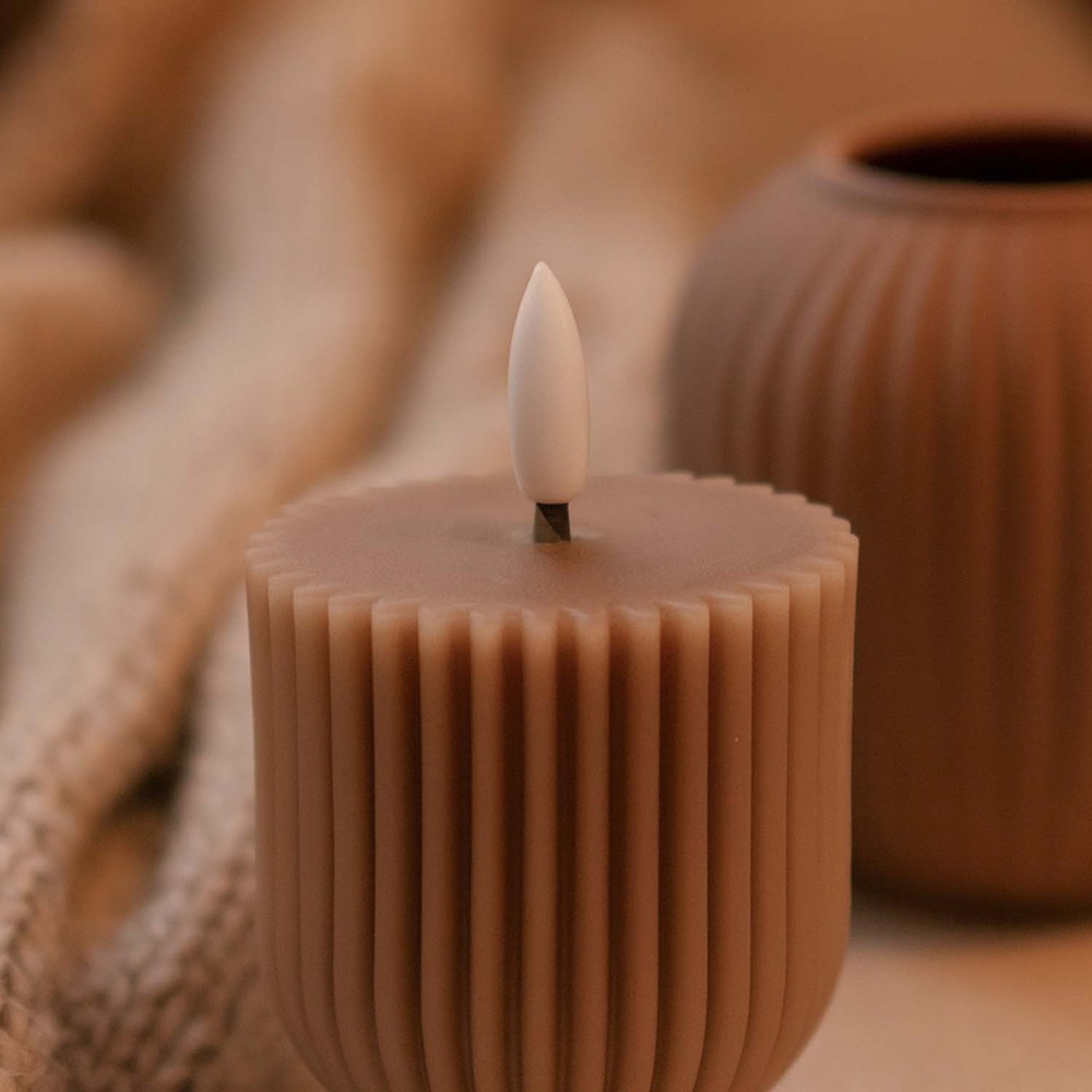 LED timeglas lys med naturtro flammeeffekt, brun stearin og praktisk fjernbetjening.