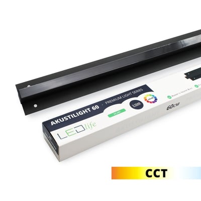 Akustilight LED skinne på 60 cm med CCT, 19W, 550 lumen og IP44. Dæmpbar og med 50.000 timers levetid.