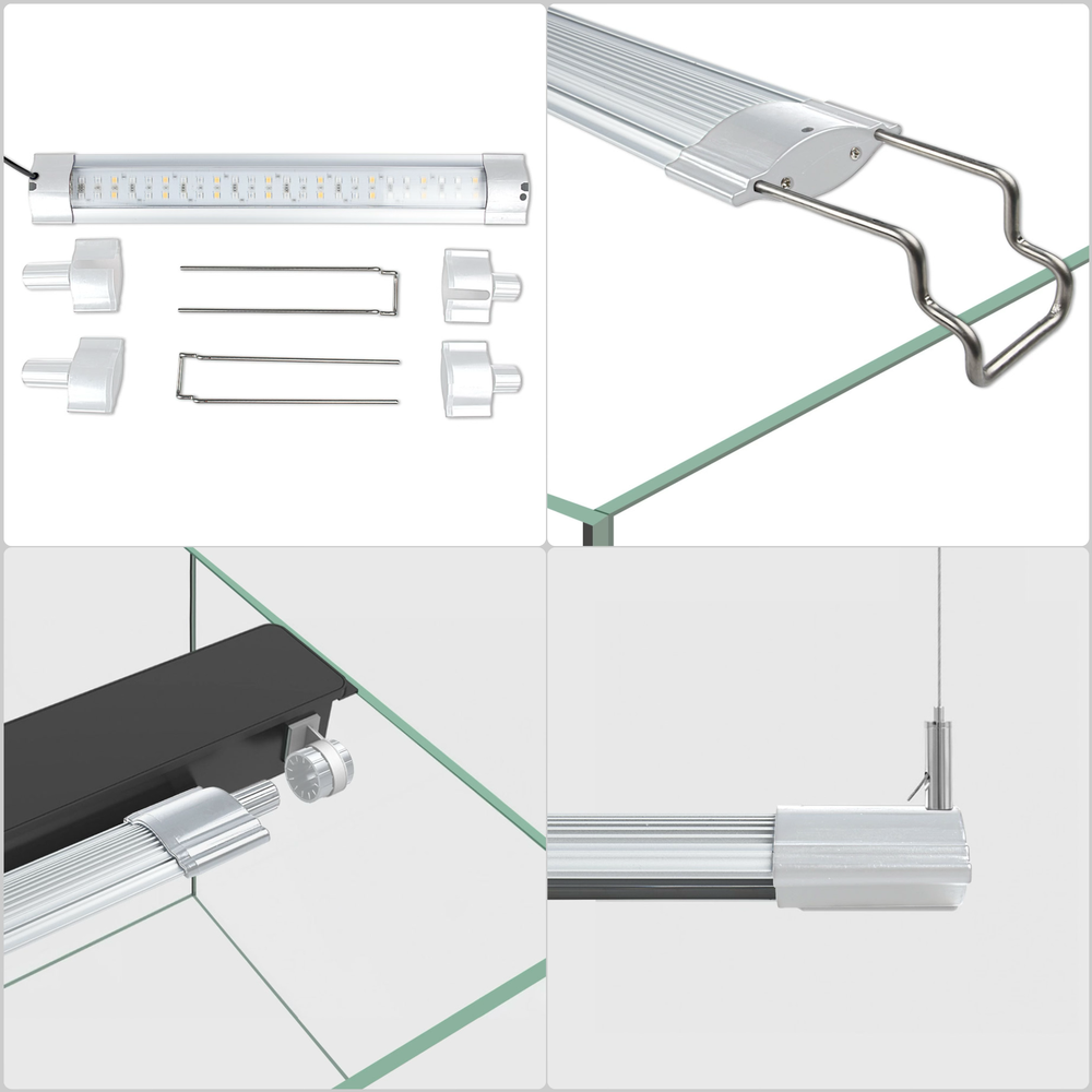 Dette akvariearmatur er designet til at give optimal belysning og fremhæve farverne i dit akvarium. Med WiFi-styringen kan du nemt tilpasse lyset til forskellige tidspunkter og behov, og den vandtætte konstruktion sikrer langvarig og problemfri brug.