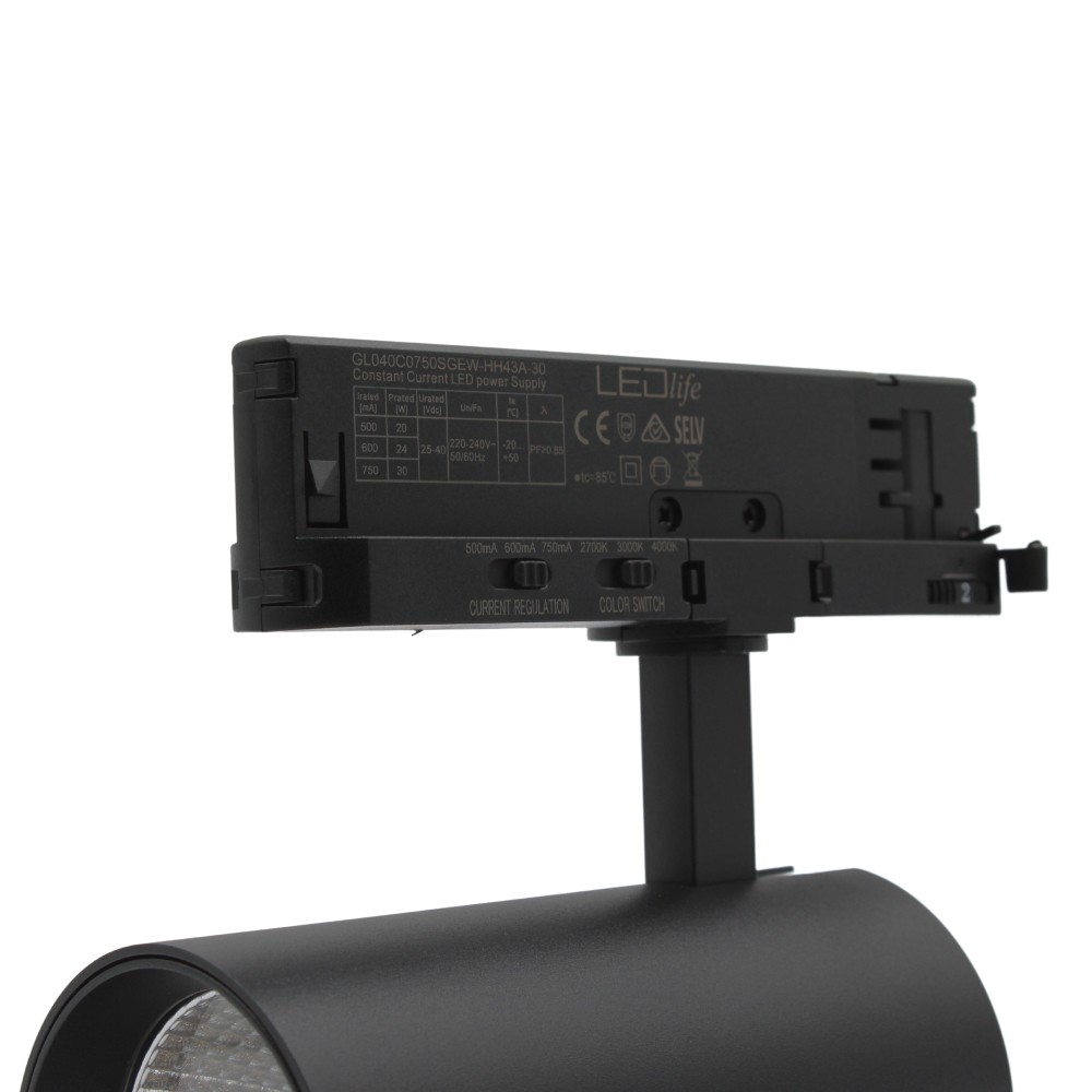 LEDlife CCT justerbar skinnespot med justerbar farvetemperatur og lysstyrke. RA90, 3200lm og flicker free. Nem at installere på 3-faset skinne.