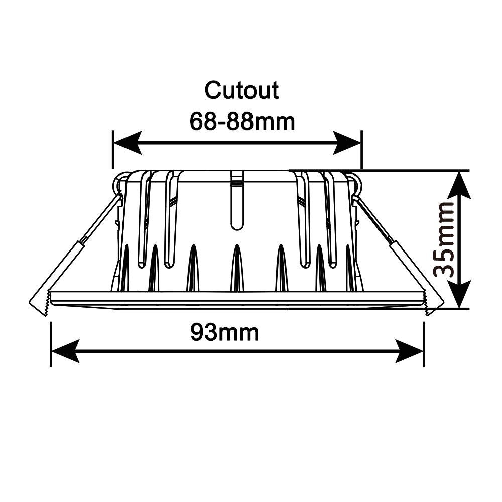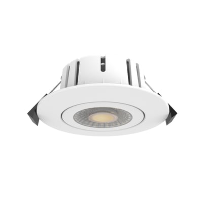 Indbygningsspotten er fremstillet i aluminium med en hvid kant, hvilket giver et rent og moderne udtryk, der passer ind i de fleste indretninger. Med en diameter på 93 mm og en højde på kun 35 mm er den diskret og let at integrere. Den kræver en hulstørrelse på 68-85 mm for installation.