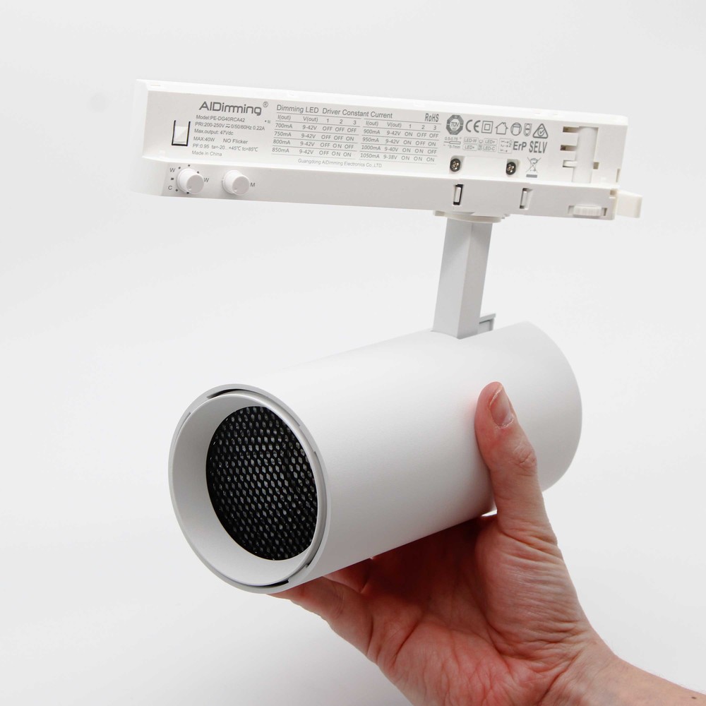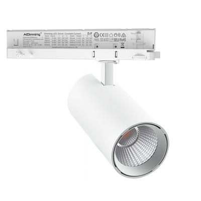 Dæmpbar skinnespot med justerbar CCT og lysstyrke. 30W, 120lm/w, RA92, 3900lm og flicker free.