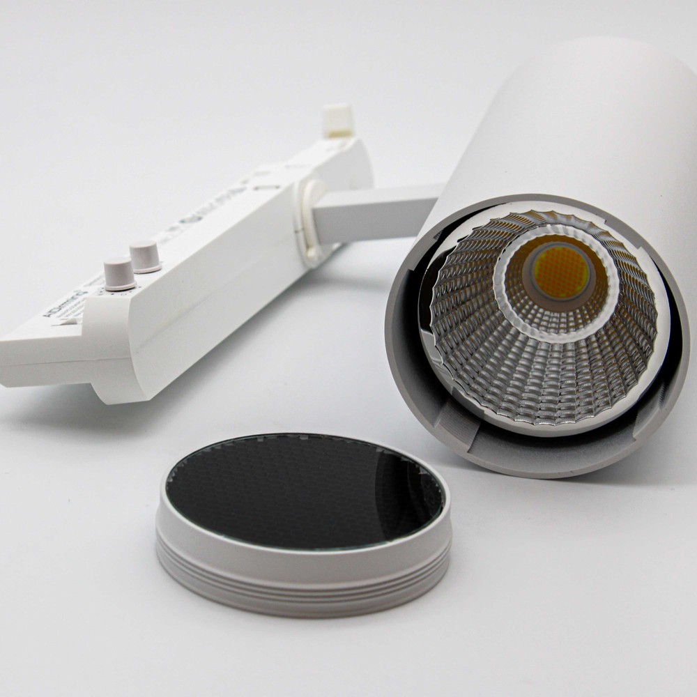 30W skinnespot med justerbar CCT og lysstyrke. 120lm/w, RA92, 3900lm og Flicker free.