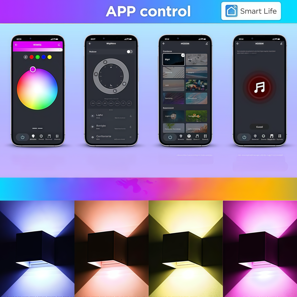 Væglampen er kompatibel med Tuya Smart, hvilket giver dig mulighed for at styre lyset via din smartphone eller tablet. Du kan nemt justere farvetemperaturen fra varm til kold hvid, vælge mellem et utal af RGB farver og dæmpe lysstyrken efter behov.