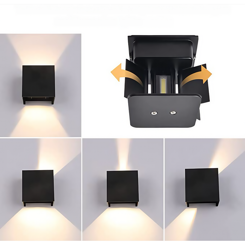 Denne væglampe er fremstillet i robust aluminium og har et stilrent, firkantet design i sort, der passer perfekt til enhver moderne indretning. Lampens op/ned lysfunktion skaber en flot lyseffekt på væggen.