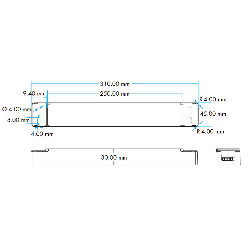 - Dimensioner (B x D x H): 310 mm x 45 mm x 30 mm