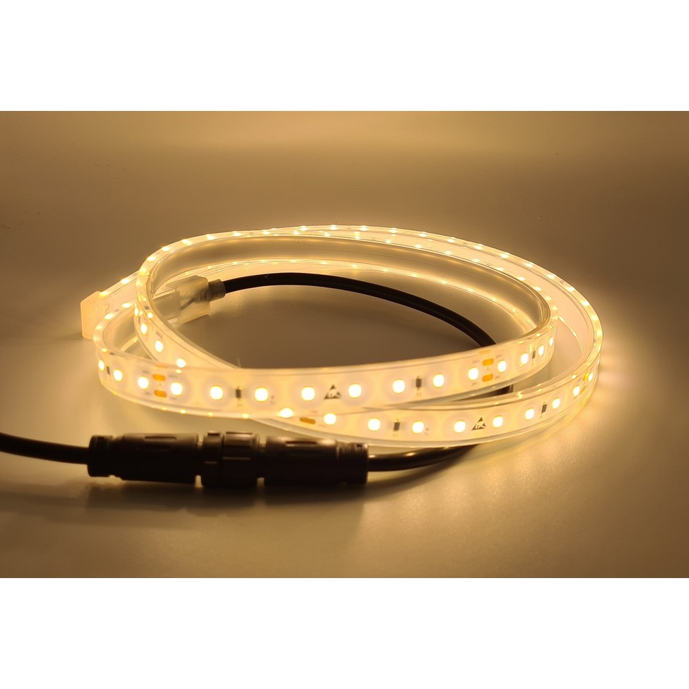 - Med en IP68-klassifikation er strippen fuldstændig vandtæt og kan tåle at være nedsænket i vand op til 1 meters dybde.