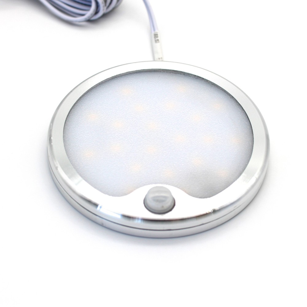 LEDlife Sono60s møbelspot med sensor. 2W LED, 165 lm, 3000K varm hvid. Ø6 cm, børstet stål, 12V.