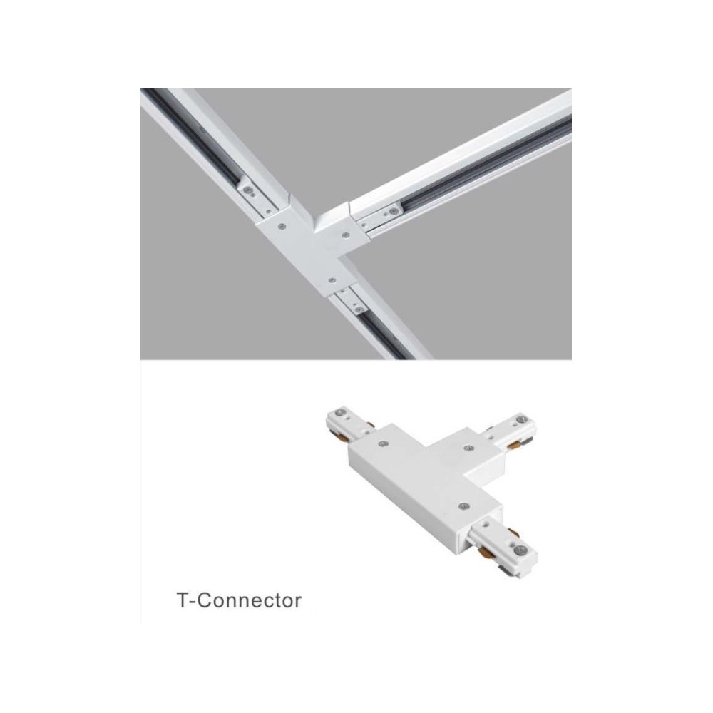 Den hvide finish sikrer en diskret integration med de fleste skinnesystemer, mens den robuste konstruktion garanterer holdbarhed. Med en spænding på 230V er denne T-samler kompatibel med standard strømforsyninger.