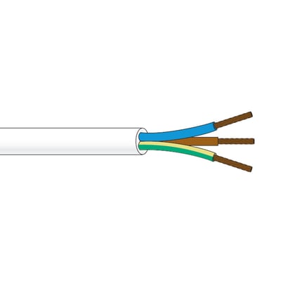 Fleksibel tilledning med 3 ledere á 0,75mm² og hvid blyfri PVC-kappe. Egnet til indendørs brug i apparater og belysning.