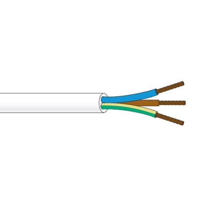 Fleksibel ledning til indvendig brug i elektriske apparater og belysningsinstallationer. 3G0,75 mm², hvid PVC kappe, 100 meter.